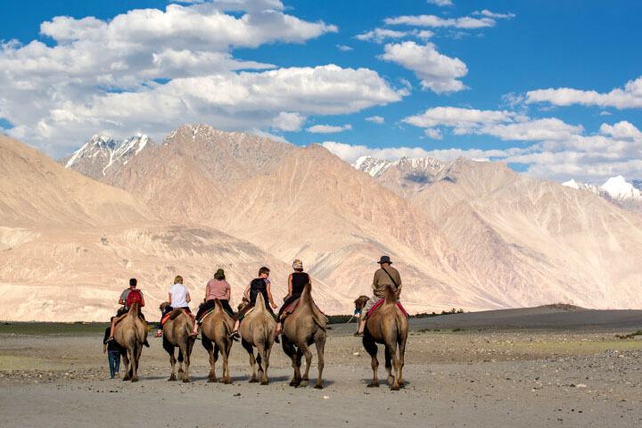 visitors can take a camel safari dunes at Hundar. Over night in Camp / Hotel.